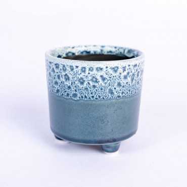 Osłonka ceramiczna na nóżkach w kolorze granatu z fakturą. Nie posiada otworu, dlatego przy przesadzaniu roślin należy pamiętać o warstwie drenażowej np. keramzyt bądź umieścić roślinę w doniczce produkcyjnej.
