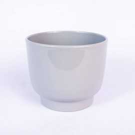 Osłonka do roślin w odcieniu szarego połysku. NOsłonka ceramiczna z dekoracyjnymi wzorami liści w kolorze ciemnego grafitu z połyskiem. Nie posiada otworu, dlatego przy przesadzeniu roślin należy pamiętać o warstwie drenażowej np. keramzyt bądź umieścić roślinę w doniczce produkcyjnej.