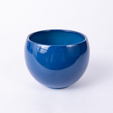Osłonka ceramiczna w kształcie kuli w kolorze morskim niebieskim z połyskiem. Nie posiada otworu, dlatego przy przesadzaniu roślin należy pamiętać o warstwie drenażowej np. keramzyt bądź umieścić roślinę w doniczce produkcyjnej.