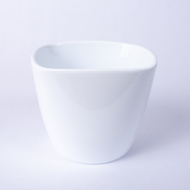 Osłonka ceramiczna w białym odcieniu z połyskiem. Nie posiada otworu, dlatego przy przesadzaniu roślin należy pamiętać o warstwie drenażowej np. keramzyt bądź umieścić roślinę w doniczce produkcyjnej.
