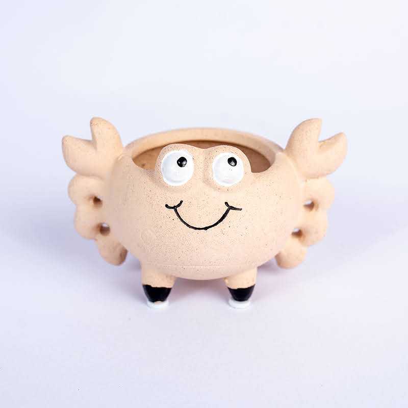 Osłonka ceramiczna w kształcie kraba w kolorze beżowym/piaskowym. Nie posiada otworu, dlatego przy przesadzeniu roślin należy pamiętać o warstwie drenażowej np. keramzyt bądź umieścić roślinę w doniczce produkcyjnej.