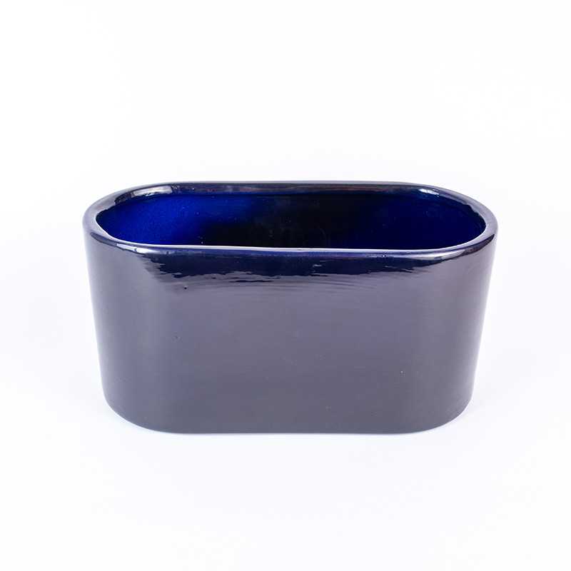 Osłonka ceramiczna w odcieniu granatowego połysku w kształcie prostokąta z zaokrąglonymi rantami.