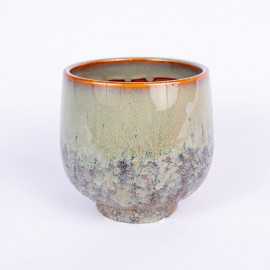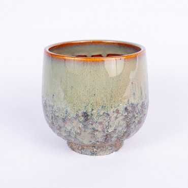 Ceramiczna osłonka ozdobna w strukturany wzór. Nie posiada otworu, dlatego przy przesadzaniu roślin należy pamiętać o warstwie drenażowej np. keramzyt bądź umieścić roślinę w doniczce produkcyjnej.