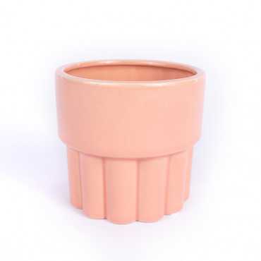 Osłonka ceramiczna w kolorze delikatnego różu z ozdobną falbanką na jej dolnej części. Nie posiada otworu, dlatego przy przesadzeniu roślin należy pamiętać o warstwie drenażowej np. keramzyt bądź umieścić roślinę w doniczce produkcyjnej.