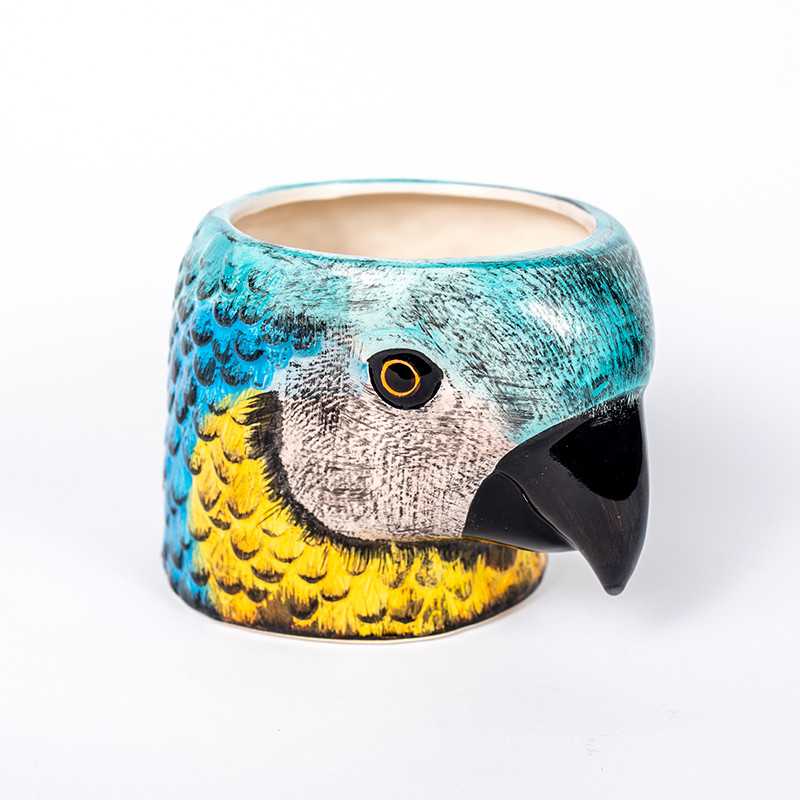 Bardzo ciekawa osłonka w kształcie głowy egzotycznego ptaka w kolorze żółto-pomarańczowo-różowym. W połączeniu z rośliną będzie tworzyła piękną kompozycję.