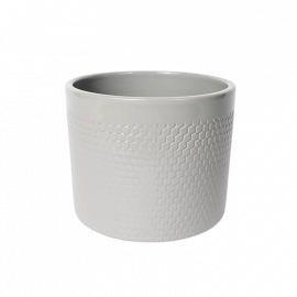 Osłonka ceramiczna w kształcie walca z wytłaczanym wzorem plastra miodu w kolorze jasnoszarym z połyskiem. Nie posiada otworu, dlatego przy przesadzeniu roślin należy pamiętać o warstwie drenażowej np. keramzyt bądź umieścić roślinę w doniczce produkcyjnej.