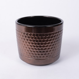 Osłonka do roślin w odcieniu miedzanym z połyskiem. Nie posiada otworu, dlatego przy przesadzeniu roślin należy pamiętać o warstwie drenażowej np. keramzyt bądź umieścić roślinę w doniczce produkcyjnej.