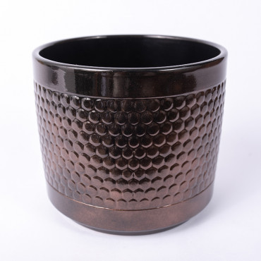 Osłonka do roślin w odcieniu miedzanym z połyskiem. Nie posiada otworu, dlatego przy przesadzeniu roślin należy pamiętać o warstwie drenażowej np. keramzyt bądź umieścić roślinę w doniczce produkcyjnej.