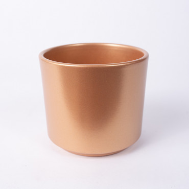 Osłonka do roślin w odcieniu starego złota z matowym wykończeniem. Nie posiada otworu, dlatego przy przesadzeniu roślin należy pamiętać o warstwie drenażowej np. keramzyt bądź umieścić roślinę w doniczce produkcyjnej.