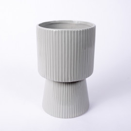 Osłonka ceramiczna w szarym odcieniu z połyskiem. Nie posiada otworu, dlatego przy przesadzaniu roślin należy pamiętać o warstwie drenażowej np. keramzyt bądź umieścić roślinę w doniczce produkcyjnej.