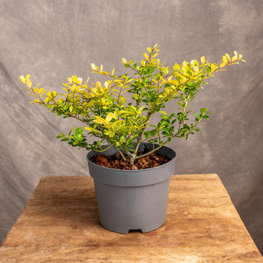 Ilex crenata 'Golden Gem', czyli ostrokrzew karłowy o niezwykle dekoracyjnym, złocistym ulistnieniu, to prawdziwa perełka wśród zimozielonych krzewów. Jego drobne, błyszczące liście w odcieniach złota i limonki rozświetlają rabaty, nadając im elegancki i świeży wygląd o każdej porze roku. Ta kompaktowa odmiana doskonale sprawdza się jako niski żywopłot, obwódka rabat czy soliter w donicy. Dobrze znosi cięcie, dzięki czemu można ją łatwo formować.