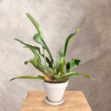 Paproć Łosie rogi ( Platycerium ) to jedna z najmodniejszych roślin ostatnich lat, jej unikatowość budzi zainteresowanie, a każdy kolejny liść jest coraz większy i coraz bardziej majestatyczny. Paproć Łosie Rogi należy do roślin epifitycznych (porastających inne rośliny) dlatego idealnie nadaję się w aranżacji jako kula mchu bądź nawet może być przyczepiona do kawałka drewna i powieszona na ścianie.