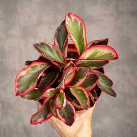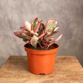 Peperomia 'Jelly' to jedna z najbardziej dekoracyjnych odmian peperomii, ze względu na swoje bardzo ozdobne liście. Mają nieregularny kształt, są lekko zawinięte do środka i urzekają ciekawym zestawieniem kolorystycznym. Ta odmiana dorasta do ok 30 cm wysokości.