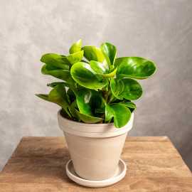 Peperomia to bliska krewna pieprzu czarnego. Pochodzi z tropikalnych lasów Ameryki Środkowej i Południowej. Ma owalne, mięsiste i błyszczące liście w kolorze limonkowym z ciemnozielonym rysunkiem po środku. Jest bardzo łatwa w uprawie i odporna na niedostatek wody.