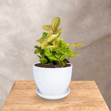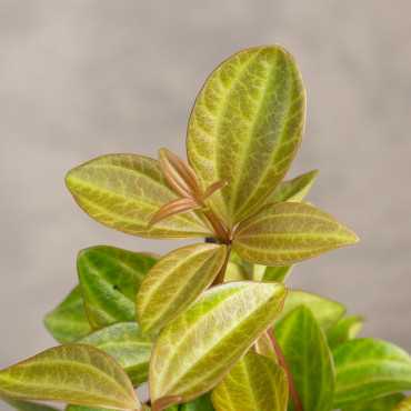 Peperomia 'Rocca Vivace' pochodzi z tropikalnych rejonów Ameryki Południowej. Ma długie pędy na których osadzone są błyszczące, lancetowate liście w kolorze zielonym z wyraźnym unerwieniem. Młode przyrosty maja zabarwienie żółto-pomarańczowe. Może być uprawiana w wysokich pojemnikach.