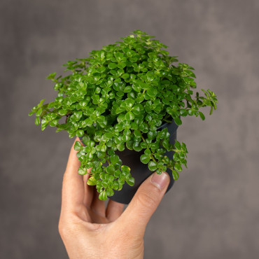 Miniaturowa pilea z drobnymi, gęsto ułożonymi, okrągłymi liśćmi w soczyście zielonym kolorze. Pilea depressa jest rośliną płożącą i mało wymagającą, która będzie idealna do kompozycji w szklanych pojemnikach.