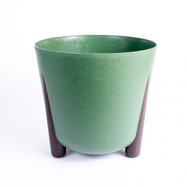 Plastikowa osłonka na nóżkach w zielonym odcieniu. Roślinę można wstawić w donicy plastikowej lub przesadzić bezpośrednio, uprzednio robiąc otwory w odpowiedniej, umieszczonej na spodzie doniczki podstawce.