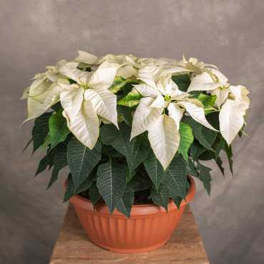 Gwiazda Betlejemska znana jest również jako wilczomlecz piękny lub poinsecja. Jej trzecia nazwa, wywodzi się od nazwiska pierwszego ambasadora USA w Meksyku, z którego to kraju pochodzi. Jej interesujący, oryginalny wygląd, przypominający swoim kształtem gwiazdę nie jest zasługą kwiatu lecz przebarwiających się przylistków - ozdobnych liści u góry rośliny, które są najczęściej czerwone. Najczęściej, bo poinsecja ma też je w barwach: pomarańczowej, białej, żółtej oraz dwubarwnej. Roślina świetnie nadaje się do domu i biura. Należy jednak pamiętać o zapewnieniu jej należytych warunków. Gwiazda Betlejemska uwielbia ciepło oraz nie znosi zimna oraz przeciągów. Aby jak najdłużej cieszyć się wilczomleczem pięknym zalecamy zapewnić mu stanowisko jasne, w którym panuje temperatura od 18 do 21°C. Należy też pamiętać o zachowaniu wilgotnego podłoża, jednak nie wolno przesadzić z podlewaniem torfu, w którym rośnie poinsecja, bo grozi to gniciem korzeni oraz chorobami grzybowymi. Poinsecję od lat uprawiamy w naszych szklarniach w Skierniewicach wg. tradycyjnej receptury. Często słyszymy o niej opinię, że jest najpiękniejszą Gwiazdą Betlejemską w Polsce. Mamy nadzieję, że spodoba się również Tobie.