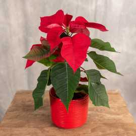 Poinsecja czyli Gwiazda Betlejemska to pozycja obowiązkowa na wigilijnym stole. Poinsecja naszej produkcji cechuje się najwyższą jakością, dużą trwałością i intensywnością kolorów. Prezentowana odmiana 'Freya Red' to roślina o intensywnie czerwonych przykwiatkach.