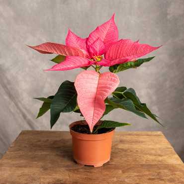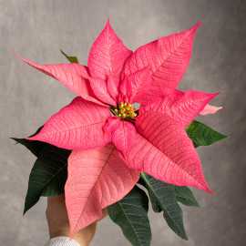 'Premium Lipstic Pink' to odmiana gwiazdy betlejemskiej o dużych, różowych kwiatach.