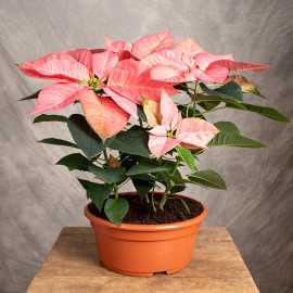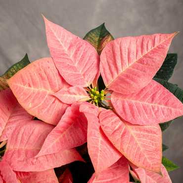 Poinsecja czyli Gwiazda Betlejemska to pozycja obowiązkowa na wigilijnym stole. Poinsecja naszej produkcji cechuje się najwyższą jakością, dużą trwałością i intensywnością kolorów. Prezentowana odmiana 'Premium Picasso' ma piękne kremowo- różowe przykwiatki.