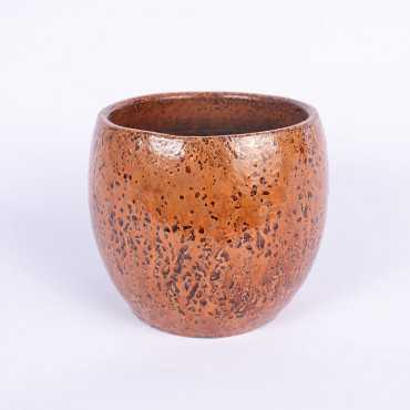 Osłonka ceramiczna w kolorze pomarańczowym, z widocznym wzorem w ciemnieszym odcieniu Nie posiada otworu, dlatego przy przesadzeniu roślin należy pamiętać o warstwie drenażowej np. keramzyt bądź umieścić roślinę w doniczce produkcyjnej.