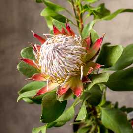 Protea królewska to gatunek rośliny z rodziny srebrnikowatych. Naturalnie występuje na terenie Afryki, gdzie osiąga nawet do 1,5 m wysokości. W naszym klimacie ptotea uprawiana jest jako roślina domowa doniczkowa. Jej największą ozdobą są duże, gwiazdowate kwiatostany. Protea często spotykana jest także w kwiaciarniach jako kwiat cięty. Dobrze wygląda także po zasuszeniu.