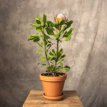 Podlewanie: Podlewamy umiarkowanie, tak by nie dopuścić do zalania systemu korzeniowego. Protea dobrze znosi okresowe susze.
