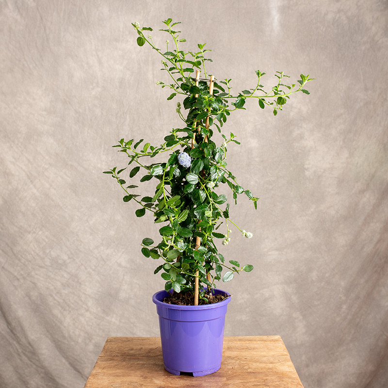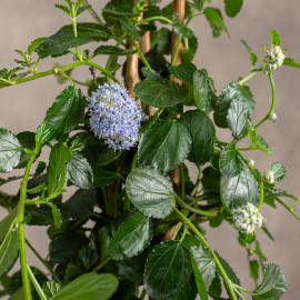 Prusznik płożący (Ceanothus thyrsiflorus var. repens) to zimozielony, nisko rosnący krzew o płożącym/pnącym pokroju, który tworzy gęste kobierce. Wiosną i latem zachwyca obfitym kwitnieniem, pokrywając się drobnymi, niebieskimi kwiatami zebranymi w efektowne kwiatostany.
