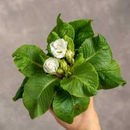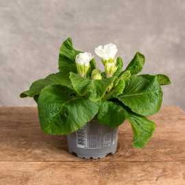 Prymula 'Elle' to urocza roślina, która wprowadza do wnętrz i ogrodów prawdziwie wiosenny nastrój. Jej białe kwiaty pięknie kontrastują z zielonymi, lekko pomarszczonymi liśćmi, tworząc efektowną ozdobę.