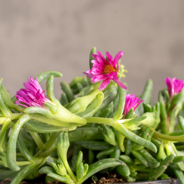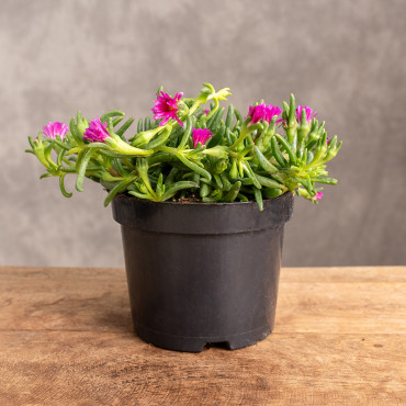 Przypołudnik (Delosperma) to niskorosnący, płożący sukulent, który zachwyca intensywnie kolorowymi kwiatami przypominającymi miniaturowe stokrotki. Jego kwiaty otwierają się tylko w pełnym słońcu, co nadaje mu potoczną nazwę „słonecznica”. Tworzy zwarte, zimozielone poduchy z drobnych, mięsistych liści, które pięknie prezentują się na rabatach, w ogrodach skalnych, pojemnikach czy jako roślina okrywowa. Przypołudnik najlepiej rośnie w pełnym słońcu i w bardzo dobrze przepuszczalnym, suchym podłożu – nie lubi nadmiaru wilgoci. Jest to roślina wyjątkowo odporna na suszę i niewymagająca w pielęgnacji. Nie jest to roślina mrozoodporna, warto zabezpieczyć na zimę lekkim okryciem lub uprawiać w pojemnikach, które można przenieść w chłodniejsze miesiące.