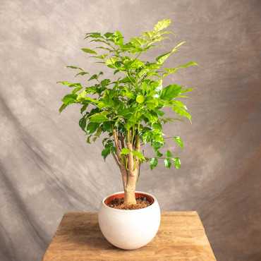 Radermachera sinica należy do egzotycznej rodziny bignoniowatych (Bignoniaceae). Jej ojczyzną są Chiny, gdzie jako drzewo osiąga kilkanaście metrów wysokości. W domu dorasta do metra, przy dobrych warunkach przyrasta około 20 cm rocznie. Pierzaste liście, soczysto zielone i błyszczące, wyrastają piętrami, co nadaje roślinie delikatny pokrój, będący doskonałym tłem dla roślin kwitnących. W naturze, a sporadycznie także w domu dorosłe egzemplarze kwitną wytwarzając żółte, lekko zwisające, trąbkowe kwiaty. Poza tym jedną z zalet radermachery jest pochłanianie dymu papierosowego i innych zanieczyszczeń, dzięki czemu często nazywana jest nikotynowcem.