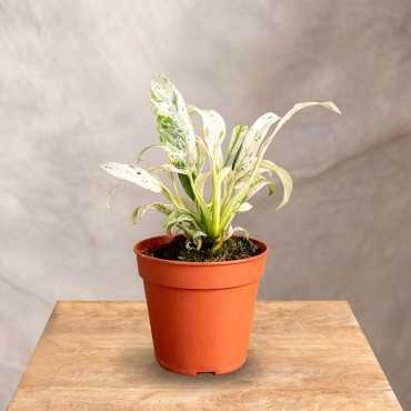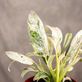 Rhaphidophora puberula 'Variegata' to unikatowa, kolekcjonerska roślina o spektakularnym wybarwieniu. Jej liście są delikatne, lancetowate, z wyjątkowym, marmurkowym wzorem, co czyni ją prawdziwą perełką wśród miłośników egzotycznych roślin.