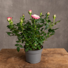 Róża doniczkowa 'Carousel' to urocza róża miniaturowa z serii Kordana, stworzona specjalnie do uprawy w doniczkach i wnętrzach. Tworzy kompaktowe, gęste krzewy obsypane licznymi, pełnymi kwiatami o pięknym, klasycznym kształcie. Odmiana ‘Carousel’ wyróżnia się intensywnym kolorem kwiatów- najczęściej dwubarwnym, z połączeniem odcieni czerwieni, różu i kremu, co nadaje jej wyjątkowy, elegancki charakter.