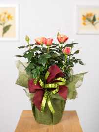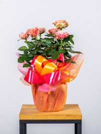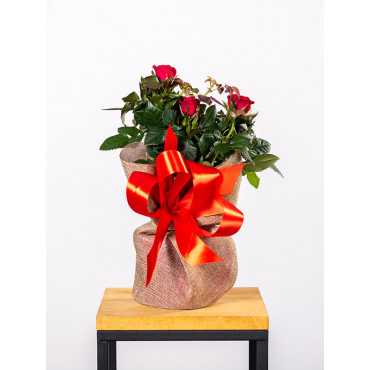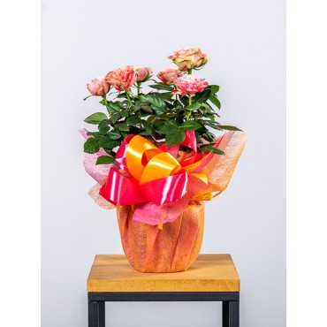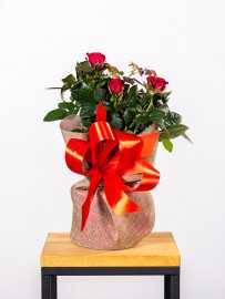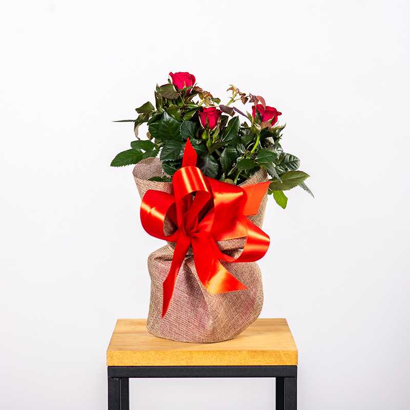Róża miniaturowa w udekorowana przez florystę to wspaniały prezent na Walentynki. Cena zawiera zestaw: roślina + przybranie.