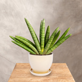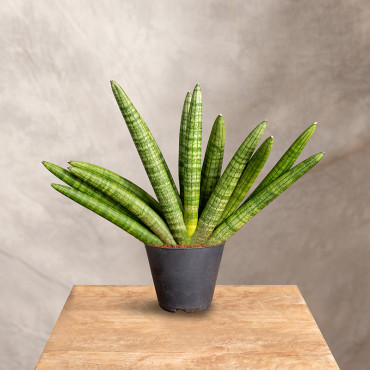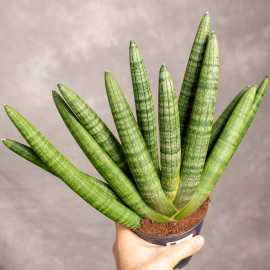 Sansevieria cylindryczna 'Boncel' to roślina charakteryzująca się podłużnymi cylindrycznymi liśćmi i ciekawą, wachlarzowatą formą. Doskonale nadaje się do wnętrz rodzinnych domów, stylowych mieszkań, a także świetnie komponuje się we wnętrzach, w których króluje minimalizm.