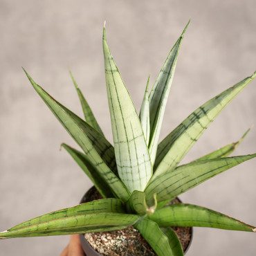 Sansewieria 'Comet Pastel Grey' to odmiana charakteryzująca się szaro-zielonymi liśćmi z jasnymi, nieregularnymi paskami. Roślina ta jest niezwykle odporna na warunki uprawowe, co sprawia, że doskonale nadaje się do upiększania biur i mieszkań. Ponadto sansewieria doskonale oczyszcza powietrze, absorbując szkodliwe substancje i zwiększając poziom tlenu.