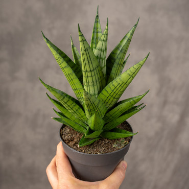 Sansevieria 'Queen Marble' to niezwykle elegancka odmiana wężownicy, wyróżniająca się ostro zakończonymi liśćmi z ze wzorami w odcieniach zieleni. Jej nowoczesny, graficzny wygląd sprawia, że doskonale pasuje do minimalistycznych i współczesnych wnętrz.