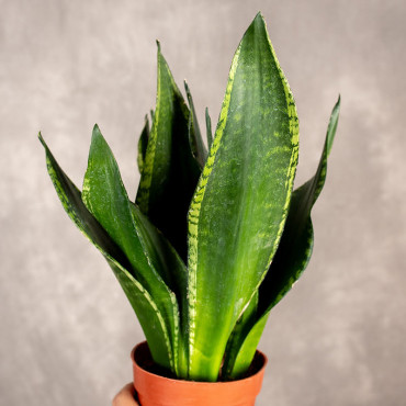 Sansewieria 'Whitney' ma piękne, ciemnozielone, szerokie liście, które ozdobione są jasnozielonym marginesem w nieregularne paski. Świetnie sprawdzi się w nowoczesnym, minimalistycznym wnętrzu.