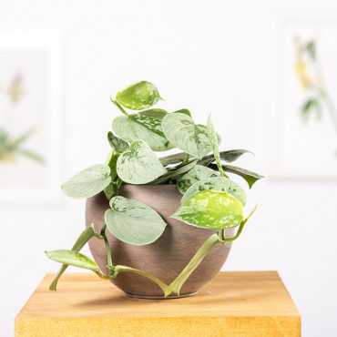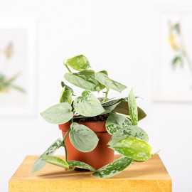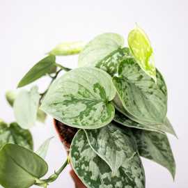 Scindapsus pictus 'Silvery Ann' jest to gęsto porastająca roślina o pięknych srebrzystych przebarwieniach na liściach.