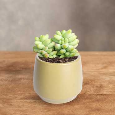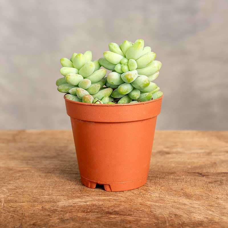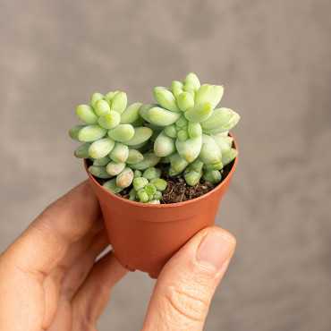 Niezwykły sukulent o zielono-szarej barwie. Pochodzi z Meksyku. Jego pędy pokryte są gęsto ułożonymi mięsistymi liśćmi. W okresie kwitnienia pojawiają się na nich niewielkie, jasno różowe kwiaty. Roślina jest odporna na wysokie temperatury i braki wody, ale jest także bardzo delikatna i trudna w transporcie.