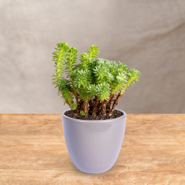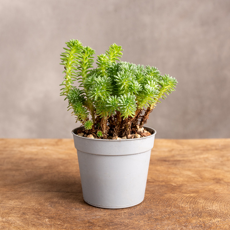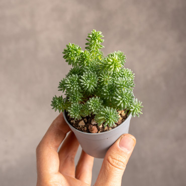 Sedum multiceps – niskorosnący sukulent, który tworzy gęste, rozgałęzione kępy o ciekawym, drzewkowatym pokroju. Jego mięsiste, szaroniebieskie liście osadzone są na cienkich łodyżkach przypominających miniaturowe drzewa, co czyni go wyjątkowo dekoracyjnym nawet poza okresem kwitnienia. Latem zakwita drobnymi, żółtymi kwiatami zebranymi w niewielkie baldachy. Roślina dorasta do ok. 10–15 cm wysokości i szybko się rozrasta, tworząc atrakcyjny, gęsty dywan.