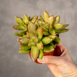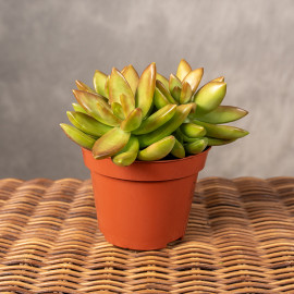 Sukulent o barwnych liściach. Tworzy gęsto ulistnione i silnie rozkrzewione kępy dorastające do 20 cm wysokości. Jego liście są grube, wydłużone i ostro zakończone. W okresie intensywnego nasłonecznienia rozchodnik ten nabiera wyjątkowo ciepłych, miedziano pomarańczowych barw. Pięknemu wybarwieniu sprzyjają promienie słoneczne oraz ograniczony dostęp do wody. Oprócz pięknych liści ozdobę stanowią także kwiaty pojawiające się wśród kęp końcem lata.