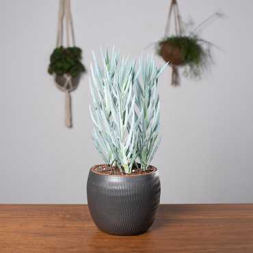 Senecio aquarine 'Mount Everest' to piękny pastelowy sukulent. Jego ciekawa barwa i forma pozwala mu dobrze komponować się z innymi roślinami. Trzeba przyznać, że ma wystarczająco uroku, żeby samemu zająć centralne miejsce. Uprawa Senecio aquarine jest bardzo prosta, najważniejsze żeby zapewnić mu dużo światła oraz pozwolić jego podłożu przeschnąć pomiędzy podlewaniami.