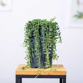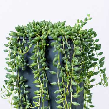 Starzec Rowleya ( Senecio rowleyanus ) to piękny sukulent, którego liście przypominają korale.