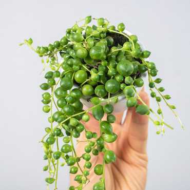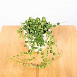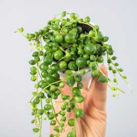 Starzec Rowleya ( Senecio rowleyanus ) to piękny sukulent, którego liście przypominają korale.