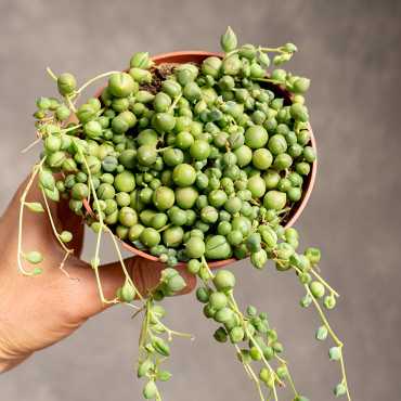 Starzec Rowleya ( Senecio rowleyanus ) to piękny sukulent, którego liście przypominają korale.