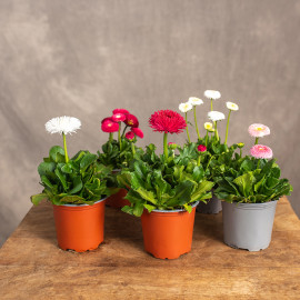 Stokrotki to jedne z najwcześniejszych roślin, jakie będziemy sadzić na naszym balkonie lub w ogrodzie. Kwitną w różnych odcieniach czerwieni po kolor śnieżnobiały. Oferowane stokrotki mają pełne kwiaty.