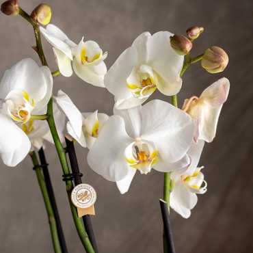Storczyk ten charakteryzuje się wyjątkowo długimi, podwójnymi pędami z pięknymi, przypominającymi motyle białymi, dużymi kwiatami. Łatwy w pielęgnacji, Phalaenopsis to nie tylko ozdoba, lecz także obietnica długotrwałego piękna, fascynującego swoim wyrafinowaniem. Jest to wspaniały pomysł na prezent!