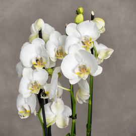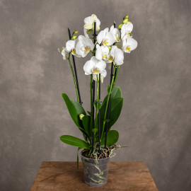 Storczyk ten charakteryzuje się wyjątkowo długimi, podwójnymi pędami z pięknymi, przypominającymi motyle białymi, dużymi kwiatami. Łatwy w pielęgnacji, Phalaenopsis to nie tylko ozdoba, lecz także obietnica długotrwałego piękna, fascynującego swoim wyrafinowaniem. Jest to wspaniały pomysł na prezent!